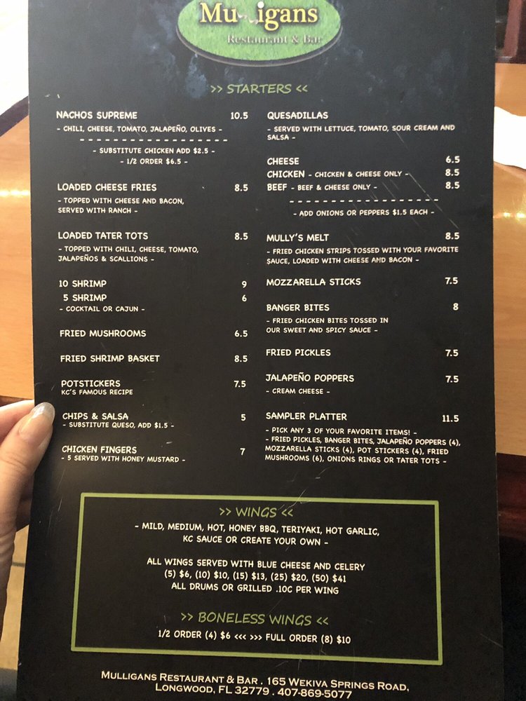 Introducing Mulligans, a sports bar in Longwood, FL, offering a diverse menu with many vegetarian options. This casual spot is known for its delicious food, including cheddar sliders, Cuban sandwiches, seasoned shrimp, and top-notch wings. Customers rave about the friendly service, comfortable outdoor seating, and the variety of appetizers like fried pickles, tater tots, mozzarella sticks, and crunchy onion rings. The atmosphere is described as small, quaint, and divey, reminiscent of a hometown hangout. Mulligans also features live music, a full bar, and is dog-friendly. With a welcoming vibe and tasty dishes, Mulligans is a must-visit for a fun dining experience.